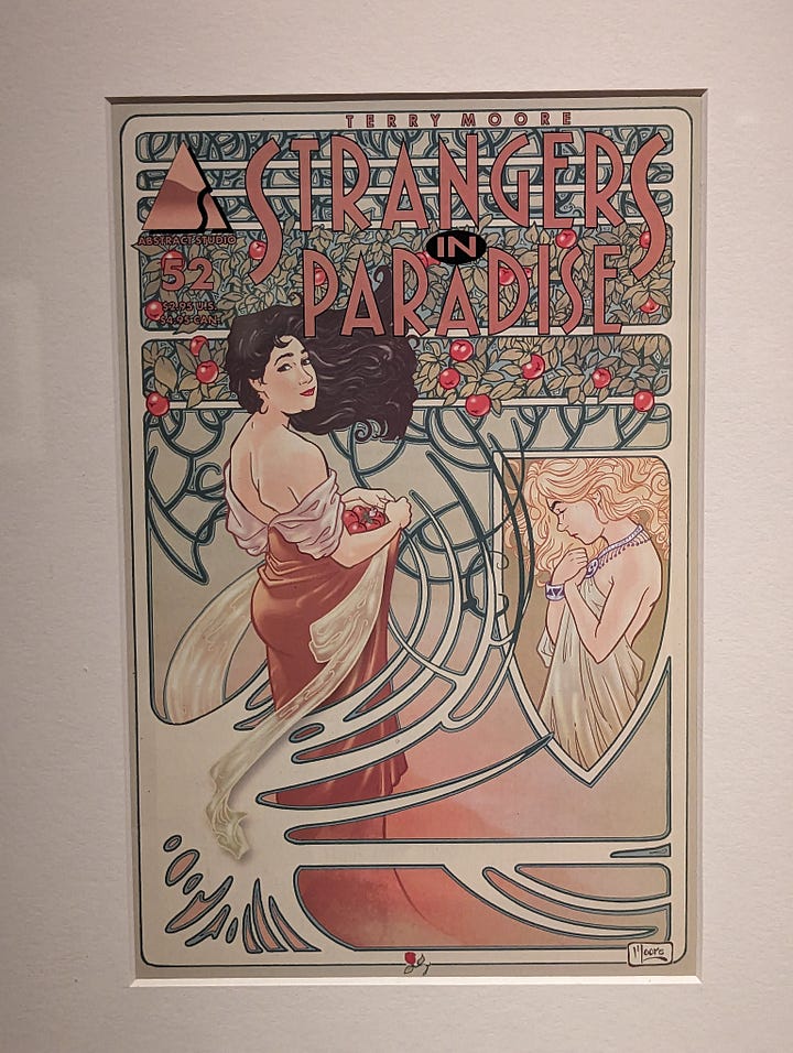 But illustrators didn’t forget it. Illustrators referenced it; Comics artist revisited and re-celebrated it. Artists pulled Mucha along into their present, along with their understanding of the cosmopolitan experience — something that might have been easily discarded by middle rural & suburban America.